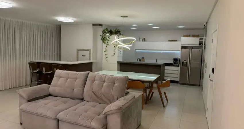 Oferece 130m² de área privativa, com um amplo living que integra conforto e funcionalidade. Totalmente mobiliado, conta com sacada integrada e churrasqueira, criando um ambiente perfeito para receber amigos e aproveitar momentos especiais no dia a dia.