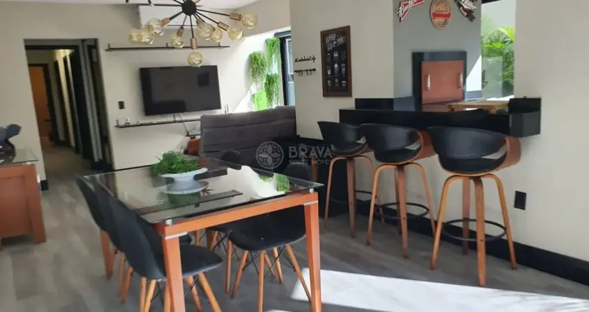 Conta ainda com espaço gourmet, cozinha equipada, 1 suíte + 2 dormitórios, área de serviço, banheiro social e 2 vagas de garagem.