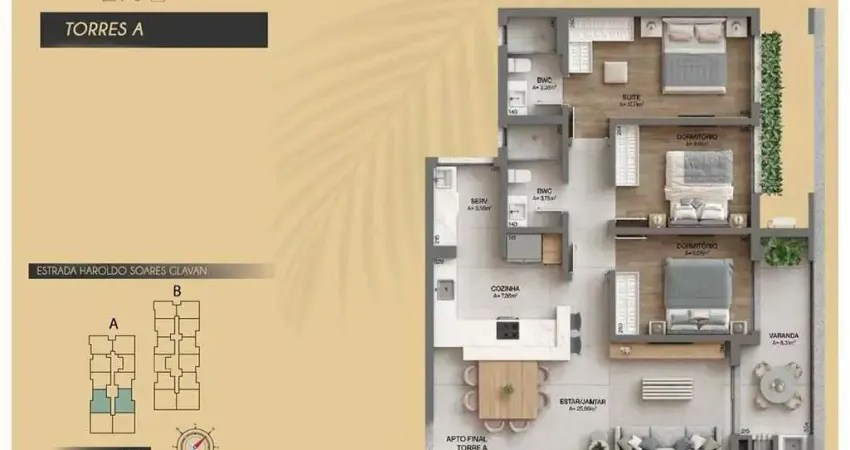 - 3 quartos sendo 1 suíte