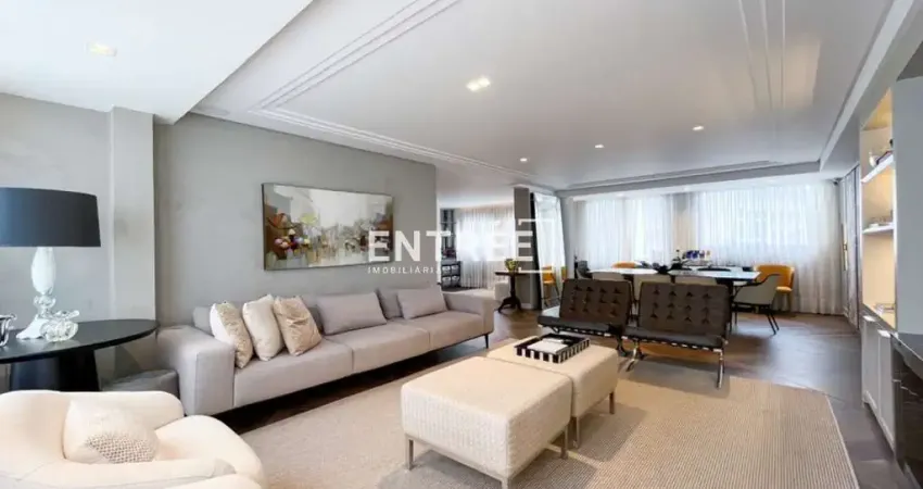 Apartamento com 157,62m² de área privativa, são 3 Suítes (sendo 1 Suíte com closet), 1 lavabo, living de 3 ambientes: estar, jantar e TV, cozinha independente, área de serviços e 2 vagas de garagem com hobby box.
