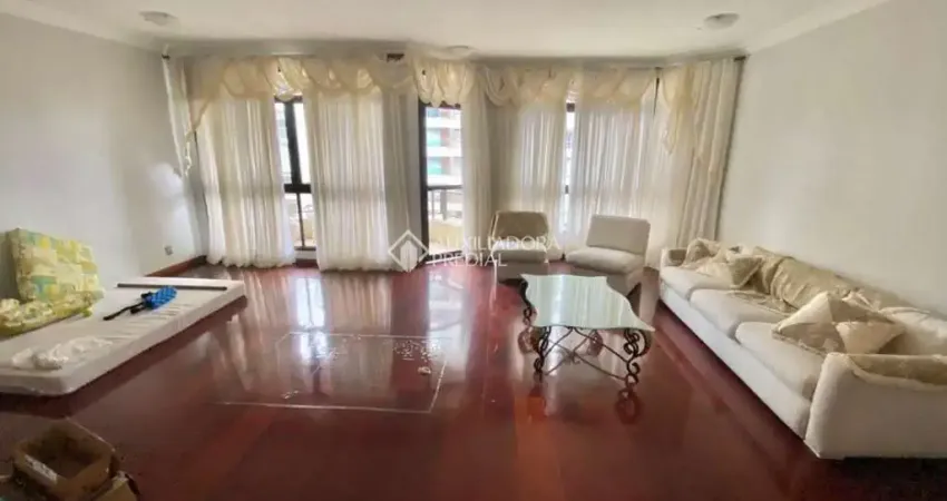 Excelente apartamento, 1 por andar, com 3 suítes, sendo 1 suíte máster com sacada, closet e hidromassagem, ampla sala de estar, sala de jantar, sala de TV, lavabo, banheiro social, sacada, cozinha, área de serviço, banheiro auxiliar, dependência transformada em escritório, espaços com móveis planejados e piso em madeira. Conta com duas vagas de garagem livres e cobertas. O condomínio possui salão de festas.