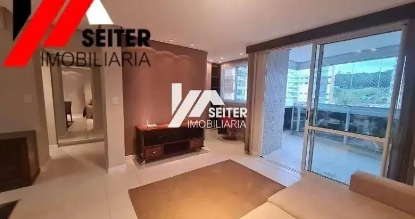 A planta original de três dormitórios foi configurada para dois dormitórios e uma sala ampliada para três ambientes: sala de estar, sala de jantar e home office. A sacada possui churrasqueira com pia, fechamento em vidro e oferece uma vista panorâmica da Beira Mar Norte. A cozinha é integrada e completa com bancadas em granito, e a área de serviço conta com tanque e aquecedor de água a gás.
