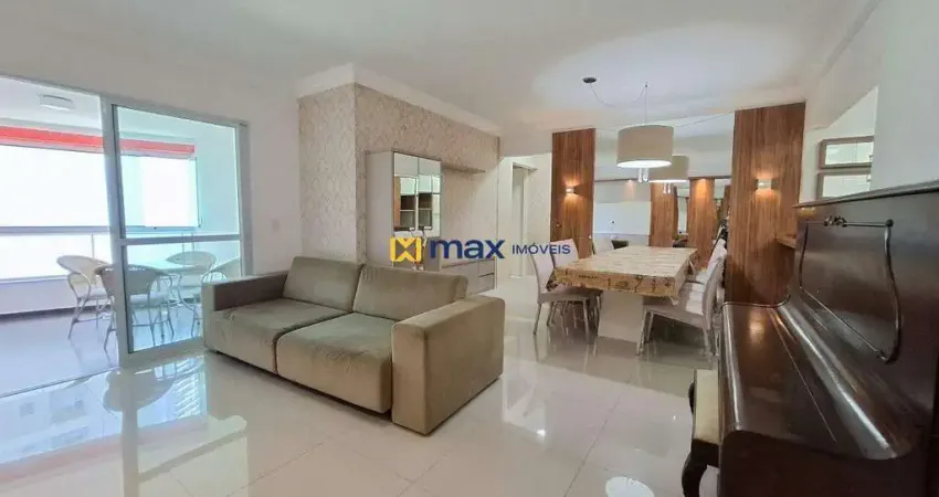 Apartamento mobiliado com 100 m² privativos, distribuídos em 3 quartos, sendo 1 suíte, sala de estar e jantar integradas, cozinha, área de serviço, sacada com churrasqueira, banheiro social e 2 vagas de garagem.