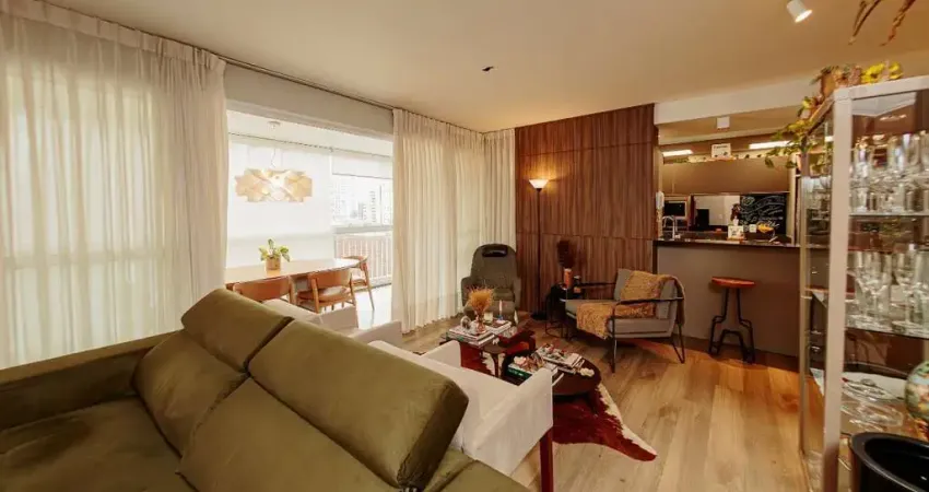 Estamos no sexto andar, virado para os fundos do prédio. Não ouvimos o barulho da rua e ainda contemplamos a vista para a piscina. Daqui podemos ver as crianças brincando na quadra e no playground. O apartamento foi escolhido a dedo pela proprietária. A construtora projetou uma planta perfeita: 145m² de área privativa, contemplando 3 suítes. Logo que recebeu o apartamento já abriu a cozinha para integrar com a sala e fez o tão sonhado closet em sua suíte. Dois dos principais diferenciais deste apartamento! O lavabo fica junto ao hall de entrada. A sala é espaçosa e há 3 ambientes: sala de TV, cantinho de estar e bar/café. A mesa de jantar foi recentemente colocada na grande sacada para se integrar a churrasqueira e ainda sobrou espaço para o cantinho de leitura. Vale reforçar que a varanda foi fechada com reiki, o que traz conforto térmico e acústico para o apartamento.