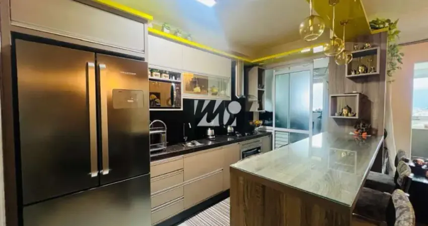 Apartamento com 96m², possui 03 quartos sendo 1 suíte, sacada com churrasqueira à gás, cozinha, sala de estar e jantar, banheiro social, 1 lavabo e 1 vaga de garagem coberta.