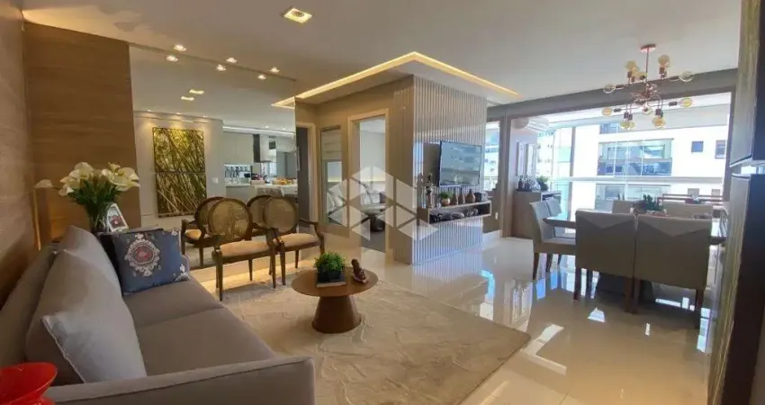 Apartamento no bairro Kobrasol, em São José, SC, com 132,06m² privativos, mobiliado, 02 vagas de garagem cobertas e hobby box, sacada com espaço gourmet, churrasqueira e adega integrada à amplo living com sala de estar, TV, sala de jantar e cozinha americana, área de serviço/lavanderia com banheiro auxiliar, lavabo, 03 dormitórios/quartos sendo 03 suítes, sendo 01 suíte com acesso à sacada e 01 sala home theater e com som acústico nas TVs.