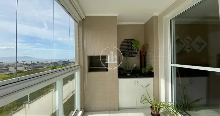 Apartamento 3 quartos em Serraria, São José com 112m² privativos e vista mar para a Baía Norte. O imóvel possui sala para 2 ambientes, cozinha tradicional, área de serviço, dependência de empregada com banheiro privativo, lavabo e sacada com churrasqueira a carvão fechada em reike. A planta quadrada permite alterações conforme necessidades da família, oferecendo flexibilidade de layout com acabamentos de qualidade e 2 vagas de garagem lado a lado.