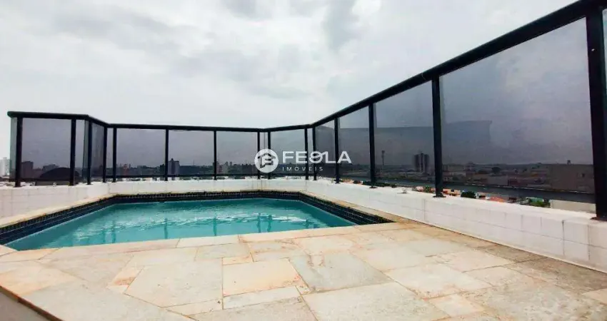 Cobertura Duplex de alto padrão com 356m² e 3 dormitórios, sendo uma suíte com closet, todos com armários embutidos e sacada, ampla sala com 3 ambientes, lavabo e (link removido) e cozinha planejadas, área de serviço com lavanderia, banheiro de serviço e escritó(link removido) andar superior, ampla área gourmet com churrasqueira externa, piscina e (link removido) com garagem paralela para 2 carros e depósito para armazenar objetos Região privilegiada de Americana, bem próximo ao centro da cidade, entre Avenida Brasil e Avenida Cillos, com diversas facilidades na vizinhança como farmácias, restaurantes, fastfoods, supermercados e muito (link removido) sua visita, nosso time está a disposição, será um prazer atendê-lo!