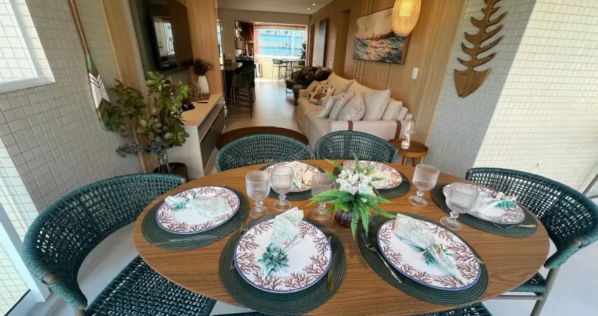 Living espaçoso para dois ambientes I Cozinha americana I Varanda gourmet com mesa para 06 lugares e churrasqueira | fechamento de vidro | bancada gourmet |Lavabo | 02 Vagas de garagem.