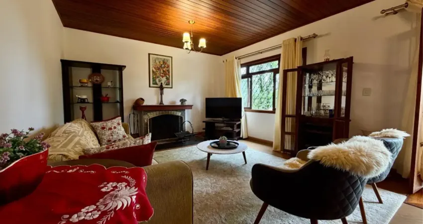 Apartamento reformado, com uma leitura atual sem perder a identidade clássica. O projeto traz forro em madeira aparente, marcenaria em tons escuros e iluminação com peças de estilo, equilibrando bem o moderno com elementos tradicionais. A área social tem sala ampla com lareira, piso contínuo e boa entrada de luz, além de jantar bem definido. As aberturas e a sacada colocam a mata como paisagem constante, com guarda-corpo em ferro trabalhado.