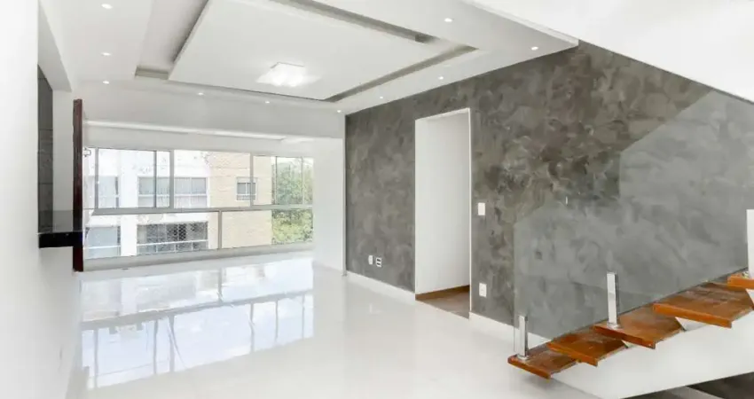 Cobertura duplex com 3 dormitórios, sendo 1 suíte com closet e 3 vagas de garagem sendo, 2 vagas para carro e 1 vaga para moto.