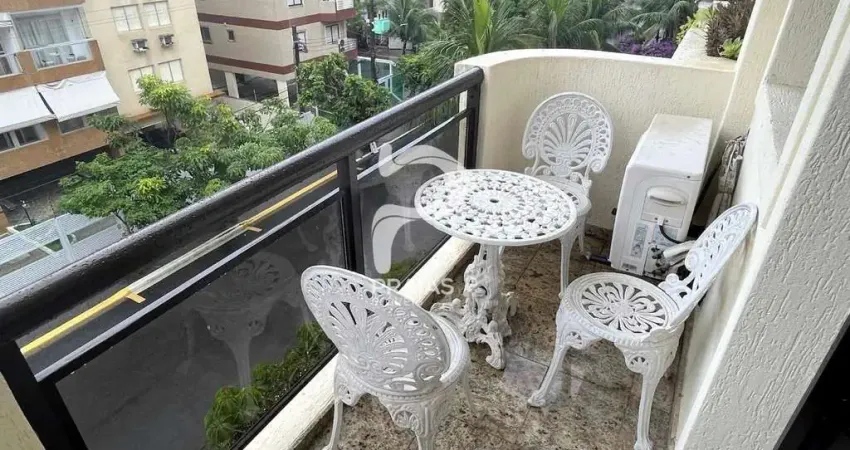 O apartamento é mobiliado e conta com ar-condicionado, cozinha planejada, e áreas de lazer no condomínio, como piscina, churrasqueira, sauna e salão de festas.