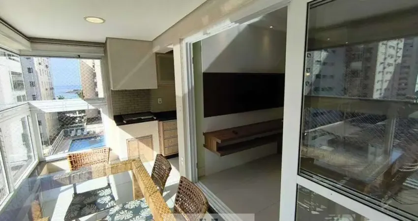 Apartamento alto padrão decorado com acesso a sacada gourmet, 3 dormitórios sendo 1 suíte, lazer no condomínio e vista lateral do mar, na praia das PITANGUEIRAS - Guarujá/SP
