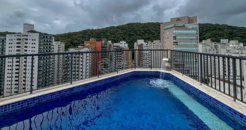 Cobertura duplex com piscina e churrasqueira a duas quadras da Praia das Pitangueiras à venda, Guarujá-SP.