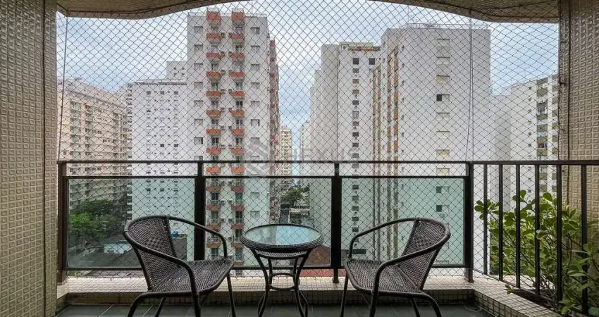 Apartamento com varanda a 2 quadras da Praia das Pitangueiras à venda, região da Barra Funda, Guarujá-SP.