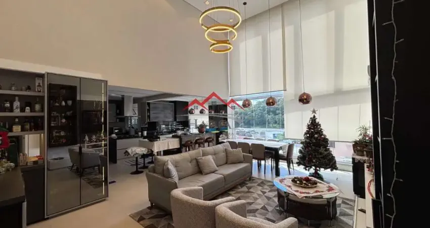 Além disso, são 6 banheiros no total, todos com acabamentos de alto padrão. A sala principal é incrivelmente ampla, com pé direito duplo e fechamento de sacada envidraçada, proporcionando muita luminosidade e uma vista deslumbrante. O hall de distribuição conta com um escritório e roupeiro, oferecendo praticidade e organização.