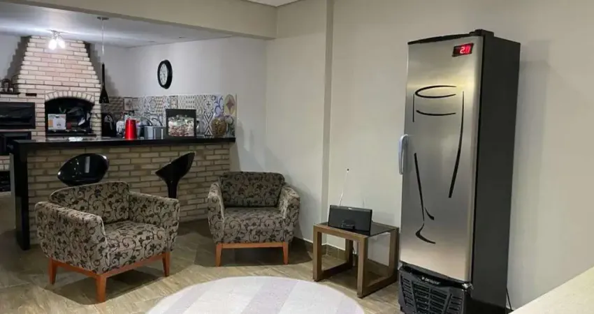 Espaço gourmet com churrasqueira e forno a lenha, sala para 3 ambientes.