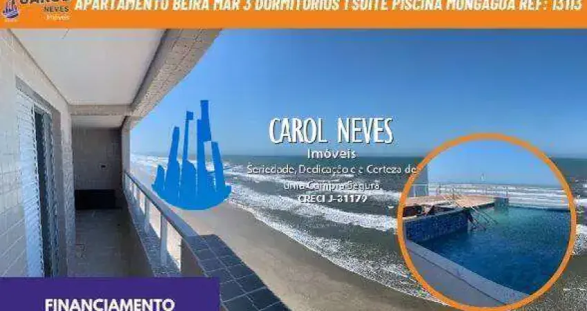 Apartamento beira mar 3 dormitorios 1 suite piscina financiamento mongagua