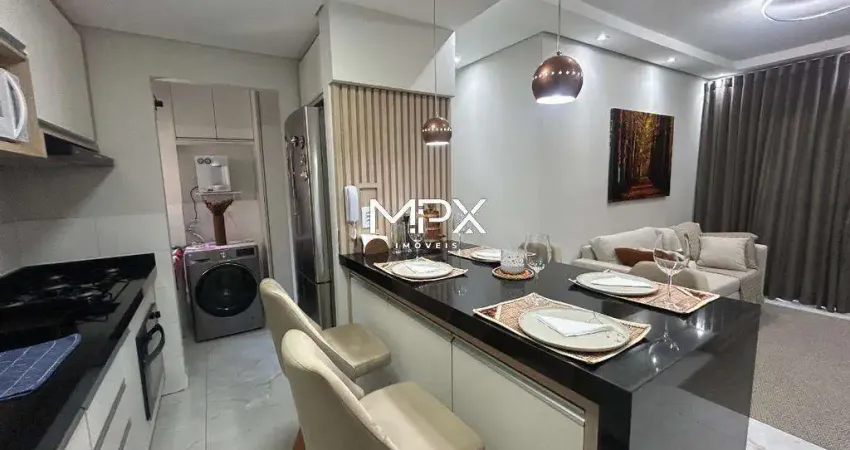 O imóvel possui 63,00 m² de área útil, que são distribuídos em sala para 2 ambientes integrada à cozinha em estilo americano, equipada com armários planejados, cooktop e coifa, área de serviço, 3 quartos com armários planejados (sendo 1 suíte) e 1 banheiro social. Além disso, conta com 2 vaga de garagem uma coberta e uma descoberta no condomínio.
