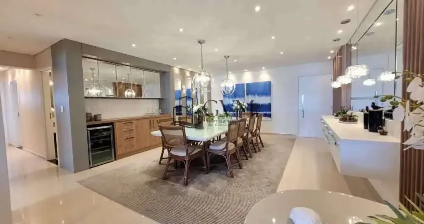 Aviação, Praia Grande, SP. 3 quartos sendo três suítes, sala, cozinha, área de serviço, terraço com churrasqueira, 1 banheiro social, lavabo, todo mobiliado. 2 vagas de garagem privativa. Área de lazer : Piscina Solarium Salão de festas Salão de jogos Playground Sauna Churrasqueira Sala de ginástica 20 metros da Praia. PORTEIRA FECHADA! Sacada gourmet com vista para o mar. Vamos agendar uma visita ?