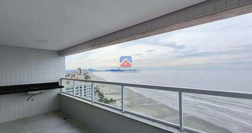 Frente ao mar, 3 dormitórios sendo 1 suíte, sala 2 ambientes, sacada com churrasqueira a carvão, cozinha ampla, 2 banheiros. 2 vagas para carro.