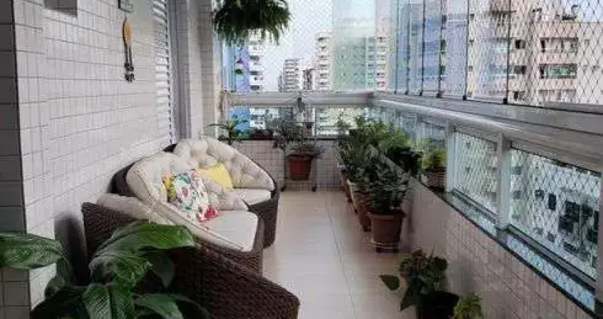O apartamento está localizado no bairro Canto do Forte com 120 metros quadrados com 3 quartos sendo 2 suítes, sala ampla com dois ambientes, varanda gourmet, totalmente fechada com vidro, vista mar e churrasqueira, cozinha com armários planejados, área de serviço e 1 banheiro social.