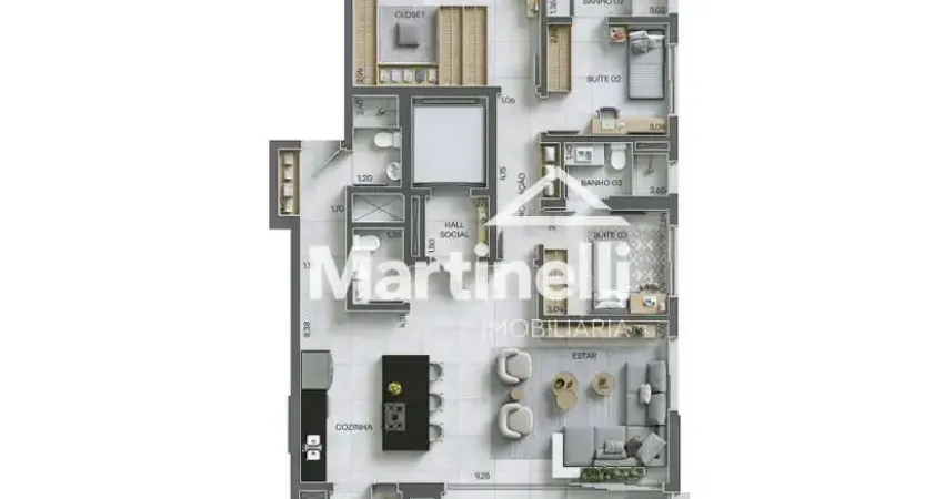 Apartamento diferenciado de 188m² de área útil à venda no Edifício Cidade de Barcelona, próximo ao Parque Linear - Bairro Bonfim Paulista, Ribeirão Preto/SP.