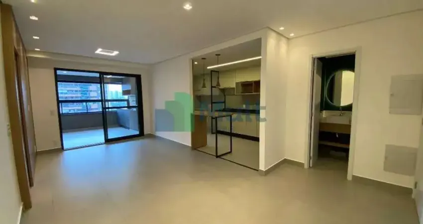 A cozinha é completa e funcional, equipada com armários planejados, coifa e cooktop. O apartamento ainda dispõe de um lavabo, área de serviço e duas vagas de garagem.