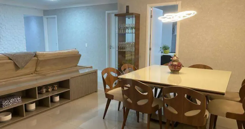 Apartamento com 128m² de área útil, totalmente mobiliado e decorado, com excelente padrão de acabamento. O imóvel possui 3 dormitórios, todos suítes, além de lavabo, sala de estar integrada à sala de jantar, sala de TV integrada à varanda gourmet, cozinha planejada, área de serviço e 3 vagas de garagem. Conta ainda com ar-condicionado central em todos os ambientes, proporcionando conforto e sofisticação.