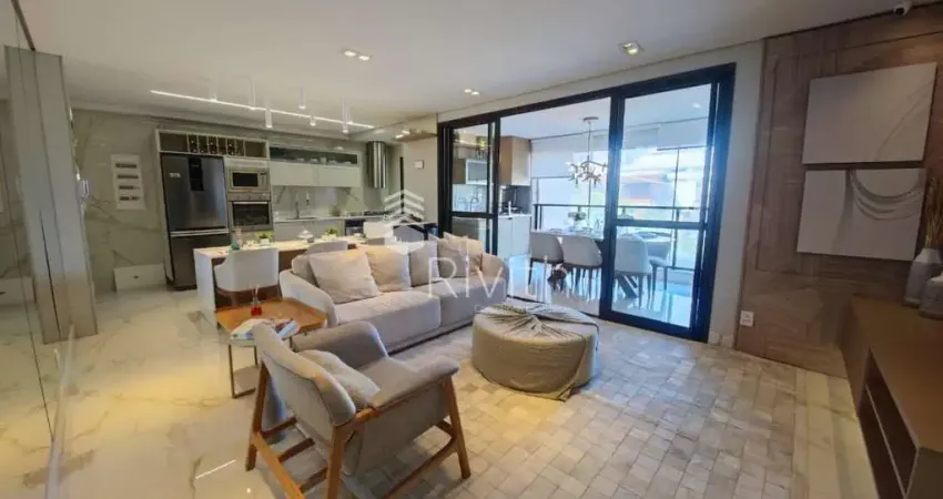 Apartamento com 117m² de área privativa (área útil 113m² + depósito) distribuídos em 03 suítes, sala de estar ampla com varanda gourmet, lavabo, cozinha, área de serviço com despensa e 02 vagas de garagem.