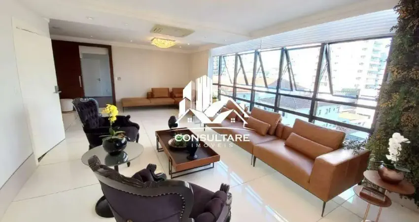 Apartamento localizado no Bairro Aparecida em Santos/SP., 285m². distribuídos em Sala para dois ambientes com ampla janela e ótima iluminação natural, Lavabo , ampla Varanda em L com vista livre, Sala de jantar ;