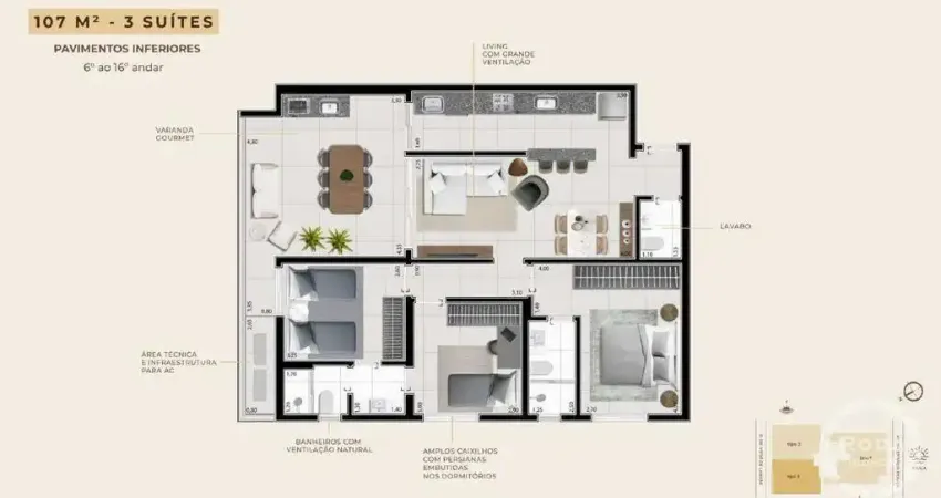 Metragem: 107m² muito bem distribuídos