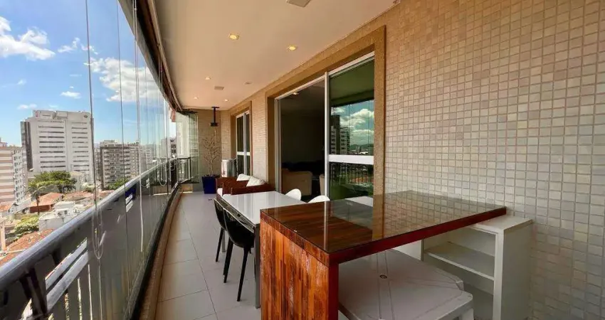 Sala de estar, jantar e TV, lavabo, varanda gourmet com churrasqueira, cozinha ampla quadrada repleta de planejados, área de serviço com dependência completa, área técnica e 3 suítes espaçosas sendo 2 com varanda.