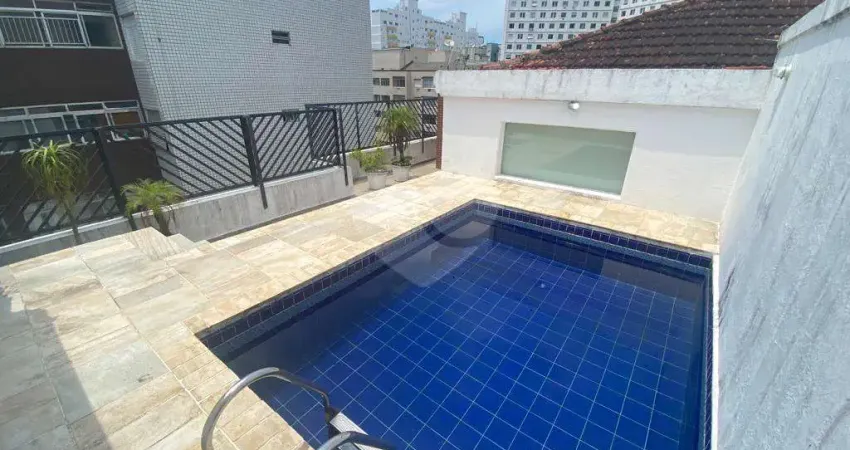 Espetacular Cobertura Duplex, a apenas uma quadra da Praia e perto do Orquidário de Santos. No primeiro pavimento, estão os 3 dormitórios com armários sendo 1 suíte, banheiro social espaçoso (podendo dividir e fazer suíte), ampla sala dois ambientes com vista livre, teto com gesso e spot, espaçosa cozinha para um delicioso café em família, rica em armários, área de serviço bem ventilada com dependência Completa de serviço com armário, Já no segundo pavimento, se encontra ampla sala em L com espaço gourmet, área externa espaçosa com Piscina, solário, churrasqueira, banheiro. Possui 2 vagas de garagem, prédio com portaria 24 horas e elevador. Agende agora mesmo sua visita. - Ref.: REO778995