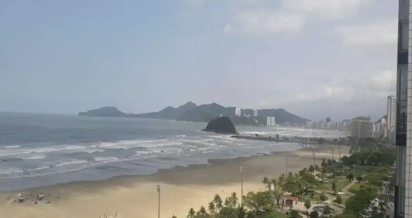 Sala ampla para 2 ambientes de frente para a praia, 3 dormitórios, contendo uma suite com banheira, escritório, cozinha espaçosa com armários, área de serviço,, 2 banheiros, 2 elevadores e uma vaga de garagem coberta com espaço para motos.