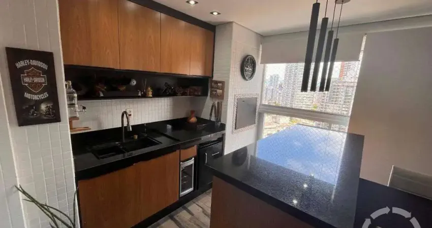 Possui sala ampla para 2 ambientes, lavabo, terraço gourmet com churrasqueira, 3 dormitórios com armários planejados sendo 1 suíte com closet e sacada, cozinha repleta de armários planejados, área de serviço separada, banheiro de serviço e 2 vagas de garagem.