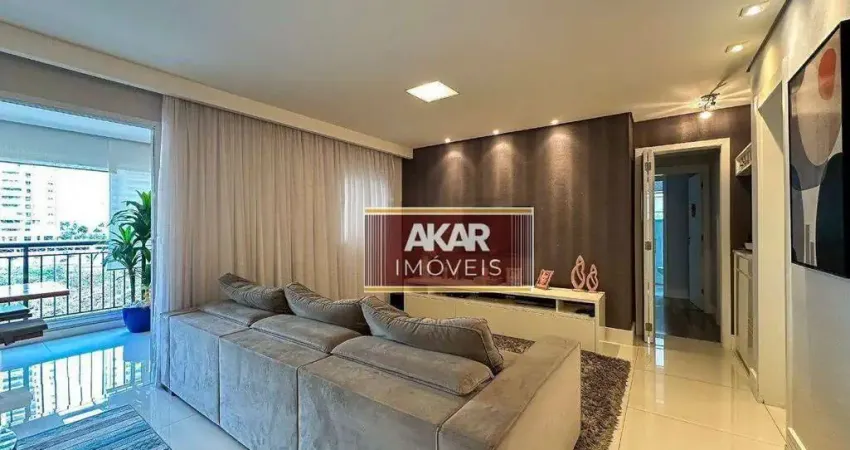 Apartamento mobiliado, 2 suítes, lavabo, cozinha, living estendido ( salas TV/jantar/estar integradas/ sacada gourmet/ lavanderia e banheiro funcionários, depósito de garagem e 4 vagas.