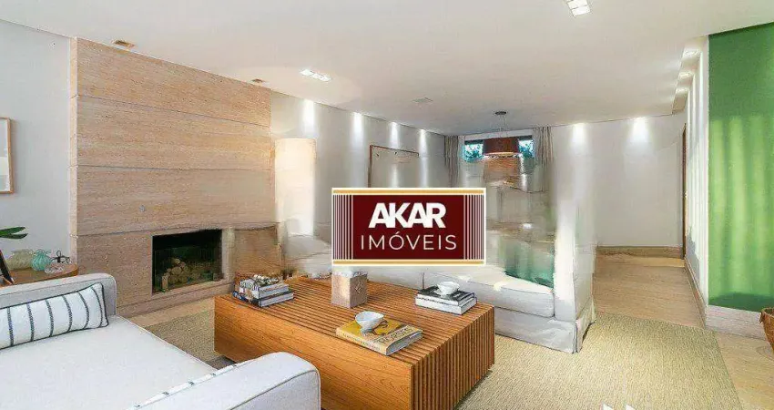 Apartamento decorado e mobiliado com área útil de 275m² distribuídos em 3 quartos, sendo 3 suítes, copa e cozinha, sala 4 ambientes com lareira, sacada, 5 banheiros, área serviço com dependência de empregada e 4 vagas garagem com depósito. O condomínio oferece áreas comuns como brinquedoteca, salão de festas interno e externo, espaço social integrado ao salão de festas, academia, sauna, banheiros para usuários das áreas comuns, sala de descanso da sauna, piscina descoberta, playground, churrasqueira, pista de caminhada, cascata, jardins e vagas para visitantes. Localizado próximo ao Golden Square Shopping e à Avenida Kennedy, com seus vários comércios e restaurantes.