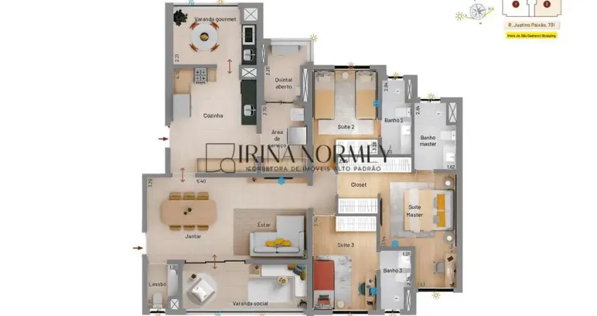 •Ambientes para Celebrar: O apartamento dispõe de duas sacadas que promovem uma ventilação cruzada espetacular: uma sacada social, perfeita para relaxar e receber visitas, e uma sacada gourmet, o cenário ideal para seus momentos de lazer e confraternização.