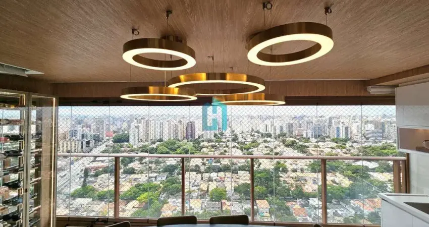 O jantar ocupa o ponto mais privilegiado do apartamento: em um andar altíssimo, a vista é permanente, ampla e absolutamente desobstruída, um dos atributos mais valorizados deste imóvel.