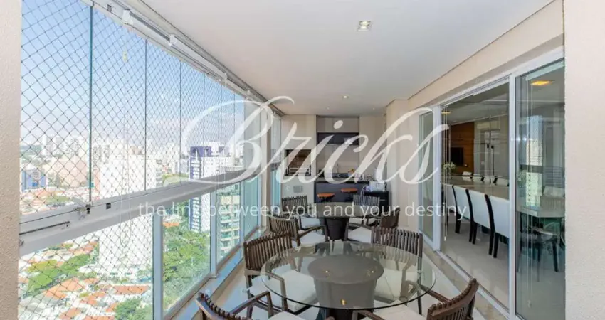 Apartamento com 138 m², localizado em andar alto no Condomínio Passeio Brooklin. Conta com 3 suítes, living integrado à varanda com churrasqueira, cozinha com acesso à varanda e à sala, dependência completa de serviço, ar-condicionado e 2 vagas de garagem.