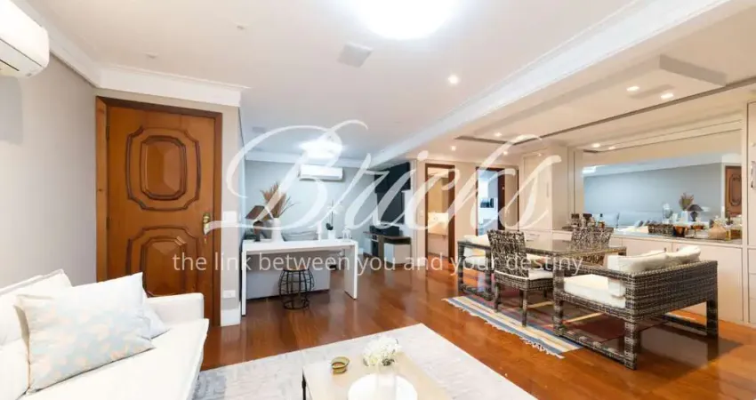 Apartamento com 150 m² de área útil, distribuído em três dormitórios, sendo uma suíte com varanda e vista para área verde. O imóvel dispõe de duas entradas independentes, social e de serviço, proporcionando praticidade e privacidade no dia a dia.