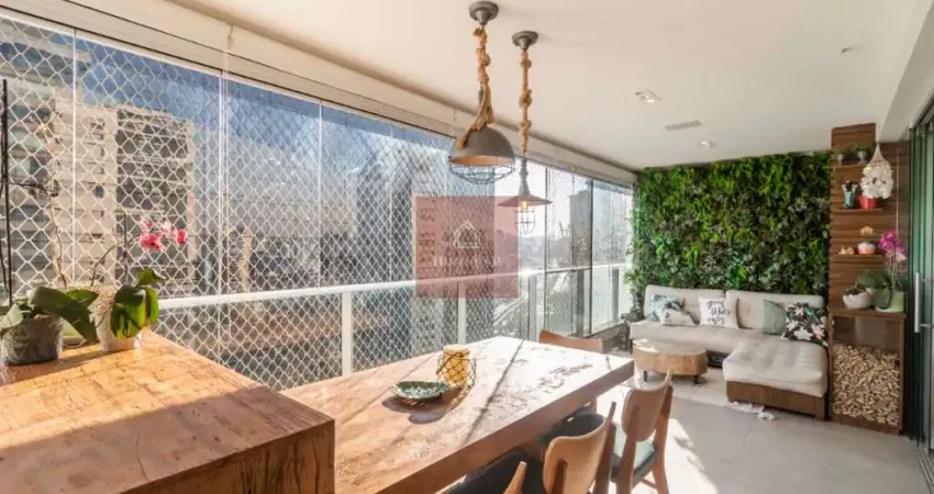 Possui móveis planejados de alta qualidade, ar condicionado em todos os ambientes, sala integrada com varanda gourmet e churrasqueira também integrada a cozinha, lavabo, cozinha repleta de armários, área de serviço completa com despensa, são 2 vagas de garagem + depósito privativo.