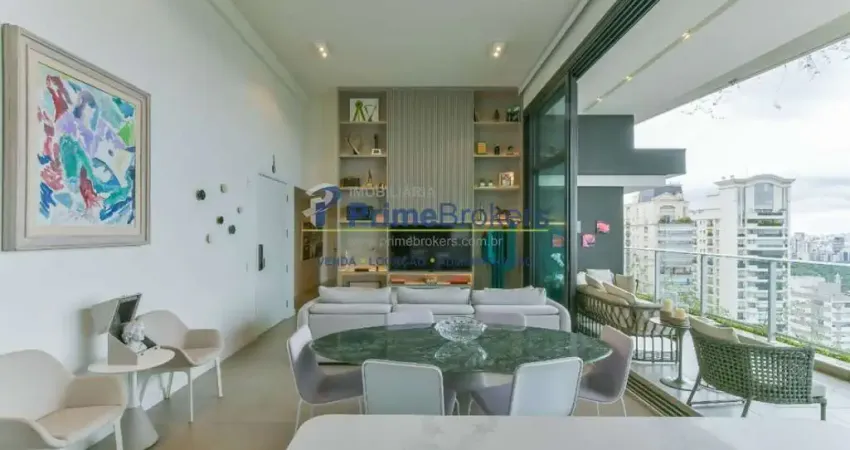 175m², 3 dormitórios sendo 3 suítes, 2 vagas, sacada com vista para o Jardim Europa, closet, churrasqueira, lavabo, marcenaria Ornari, vista panorâmica, ar condicionado central, móveis planejados, piso porcelanato, cozinha integrada, home theater
