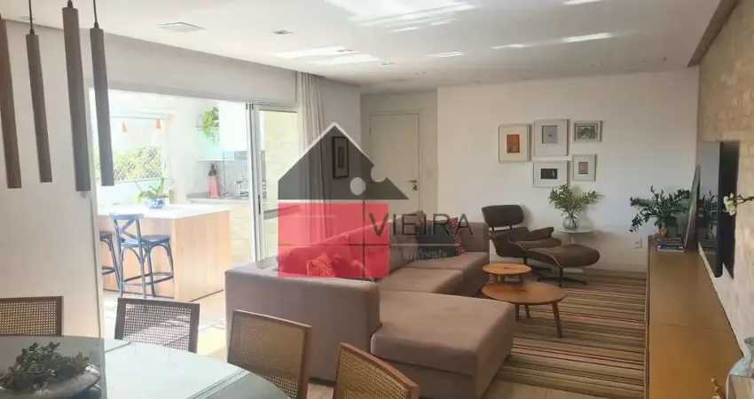 São 135m2, 3 suítes - máster com closet. Sala e todos os dorms com ar cond. Varanda com churrasqueira a carvão, Tem uma dependência de empregada. 5 Banheiros (além das suítes, tem o lavabo e banheiro de serviço) - 3 Vagas (duas soltas, uma presa). Prédio com Lazer completo (churrasqueira, salão, Brinquedoteca, Playground, piscina externa e interna, quadra de squash. ótima localização. Agende sua visita com o corretor não perca essa oportunidade.