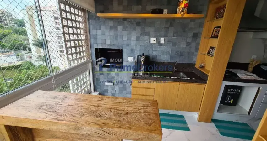 Apartamento com Varanda Gourmet toda fechada com vidros, integrada a cozinha e com (Churrasqueira a Carvão).
