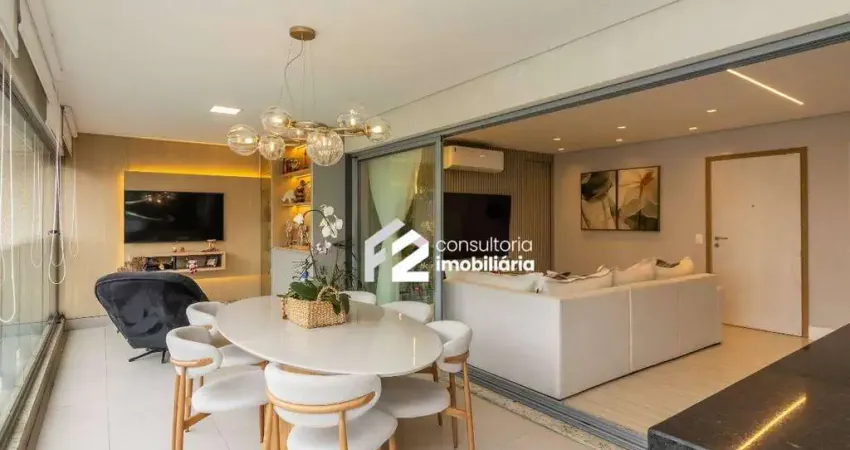 Apartamento pronto para morar, com 146 m² privativos, planta moderna e muito bem distribuída. Conta com 3 suítes, ambientes amplos, excelente iluminação natural e móveis planejados sob medida, de alto padrão, que valorizam cada espaço.