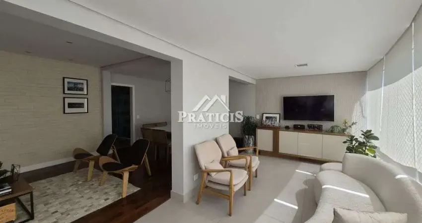 Varanda: Integrada com a sala, piso e revestimento Portobello, fechamento com vidro;
