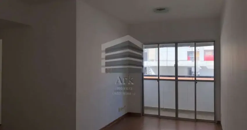 Sala para 2 ambientes e varanda com cortina de vidro.