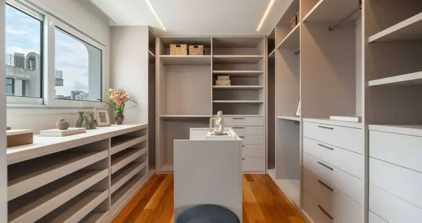 ° Marcenaria Bontempo no closet da suíte master, banheiros, rouparia, cozinha e área de serviço, projetada para dar organização e funcionalidade ao apartamento